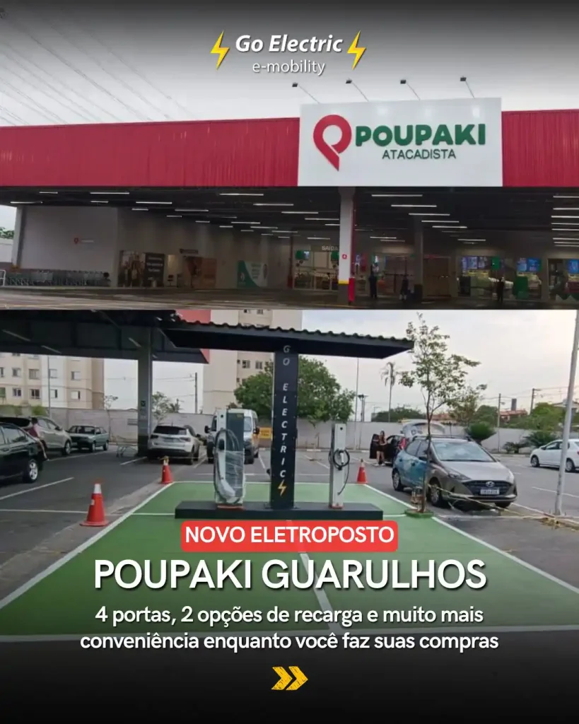Novo Eletroposto Go Electric no Poupaki Guarulhos oferece mais conveniência para quem dirige veículos elétricos